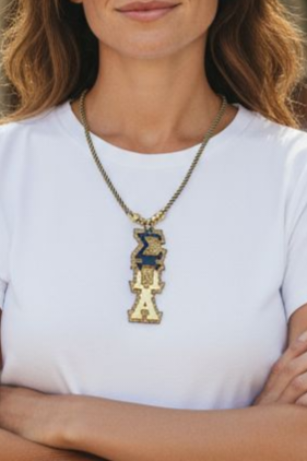 Sigma Pi Alpha Tiki: Gold Mirror on Shimmering Gold Glitter Necklace Teekee